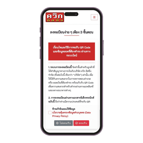 คลิกยินยอมให้ข้อมูล และ กดปุ่ม "ยอมรับ"