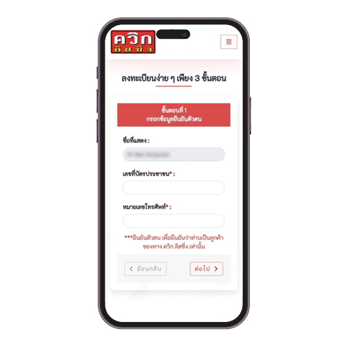 กรอกข้อมูล และ กดปุ่ม "ต่อไป"