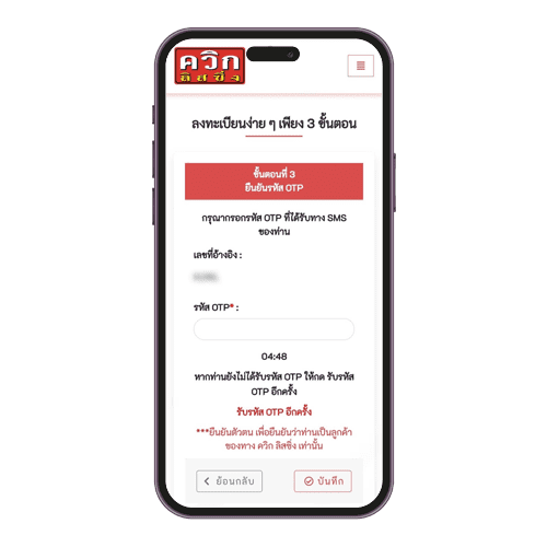 กรอกรหัส OTP ที่ท่านได้รับทาง SMS